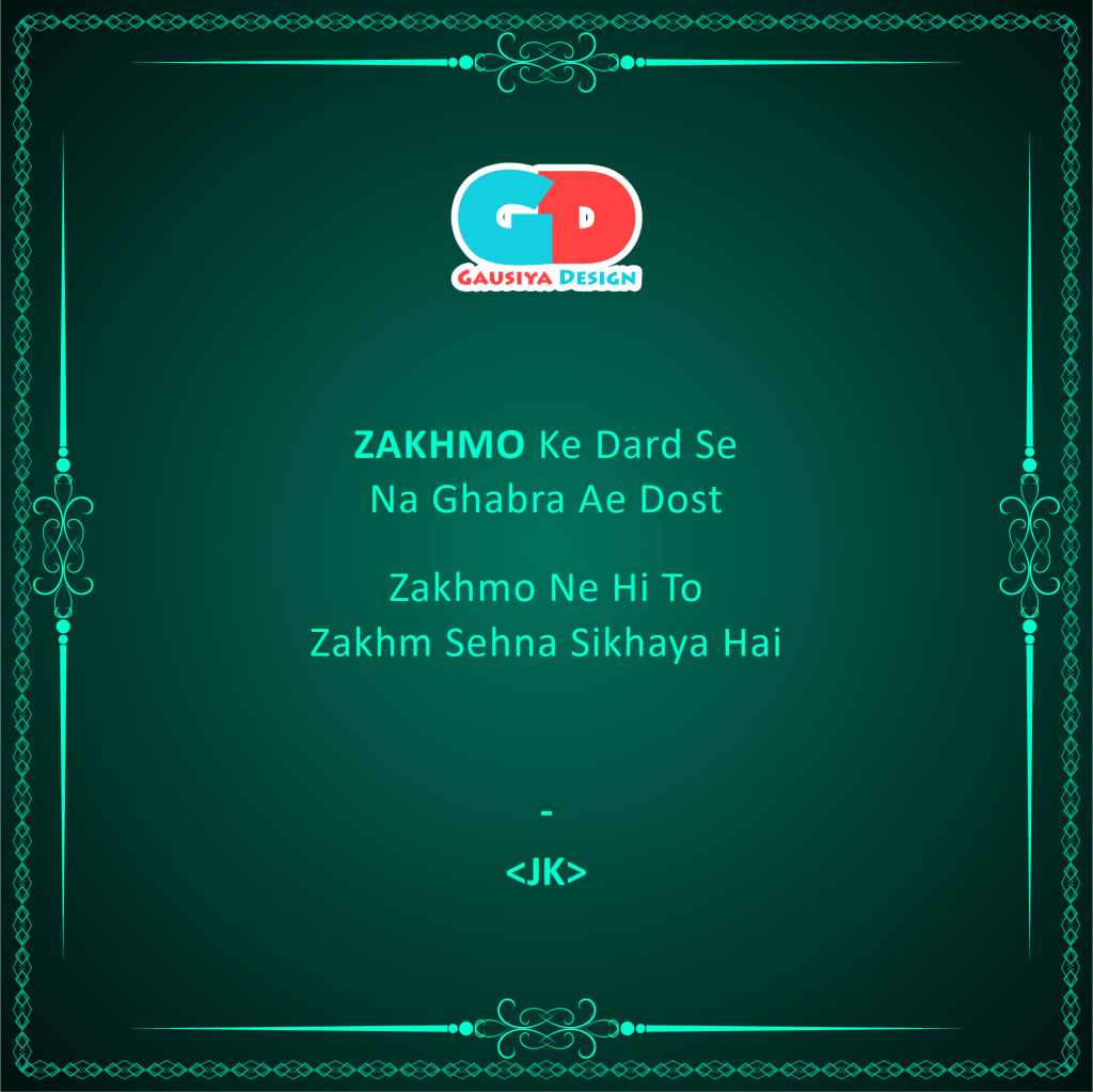 Zakhmo ke Dard Posted byShayari by JKFebruary 12, 2020Posted inShayariTags:Gazal, Kavita, Motivational, Poem, Quotes, Share, Shayari, Speech Share this: Click to share on X (Opens in new window) X Click to share on Facebook (Opens in new window) Facebook Click to share on LinkedIn (Opens in new window) LinkedIn Click to share on Pinterest (Opens in new window) Pinterest Click to share on WhatsApp (Opens in new window) WhatsApp Like Loading... Related Published by Shayari by JK Immerse yourself in the world of Mystic SHAYARIS with JAFAR Ali Shaikh. View more posts