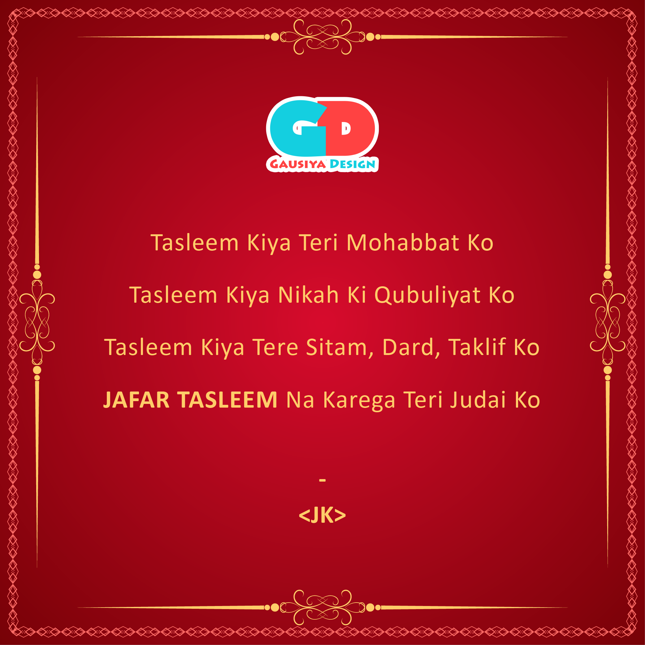Jafar Tasleem Posted byShayari by JKFebruary 14, 2020Posted inShayariTags:Gazal, Kavita, Motivational, Poem, Quotes, Share, Shayari, Speech Share this: Click to share on X (Opens in new window) X Click to share on Facebook (Opens in new window) Facebook Click to share on LinkedIn (Opens in new window) LinkedIn Click to share on Pinterest (Opens in new window) Pinterest Click to share on WhatsApp (Opens in new window) WhatsApp Like Loading... Related Published by Shayari by JK Immerse yourself in the world of Mystic SHAYARIS with JAFAR Ali Shaikh. View more posts