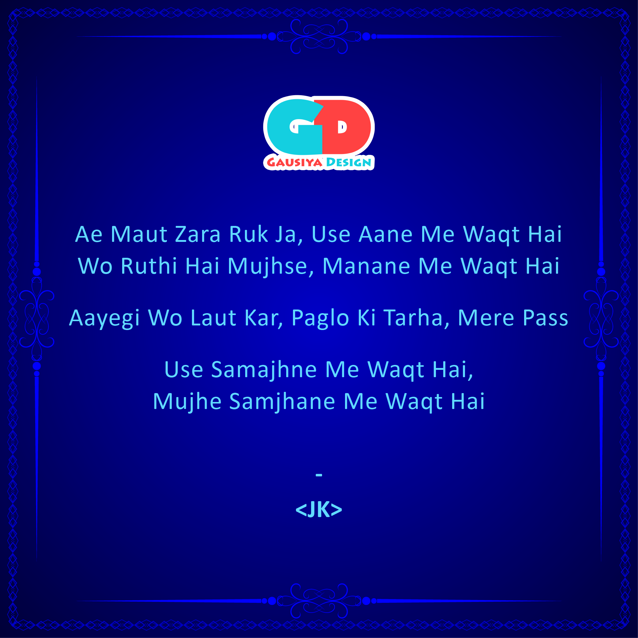Ae Maut Posted byShayari by JKMarch 18, 2020Posted inShayariTags:Gazal, Kavita, Motivational, Poem, Quotes, Share, Shayari, Speech Share this: Click to share on X (Opens in new window) X Click to share on Facebook (Opens in new window) Facebook Click to share on LinkedIn (Opens in new window) LinkedIn Click to share on Pinterest (Opens in new window) Pinterest Click to share on WhatsApp (Opens in new window) WhatsApp Like Loading... Related Published by Shayari by JK Immerse yourself in the world of Mystic SHAYARIS with JAFAR Ali Shaikh. View more posts