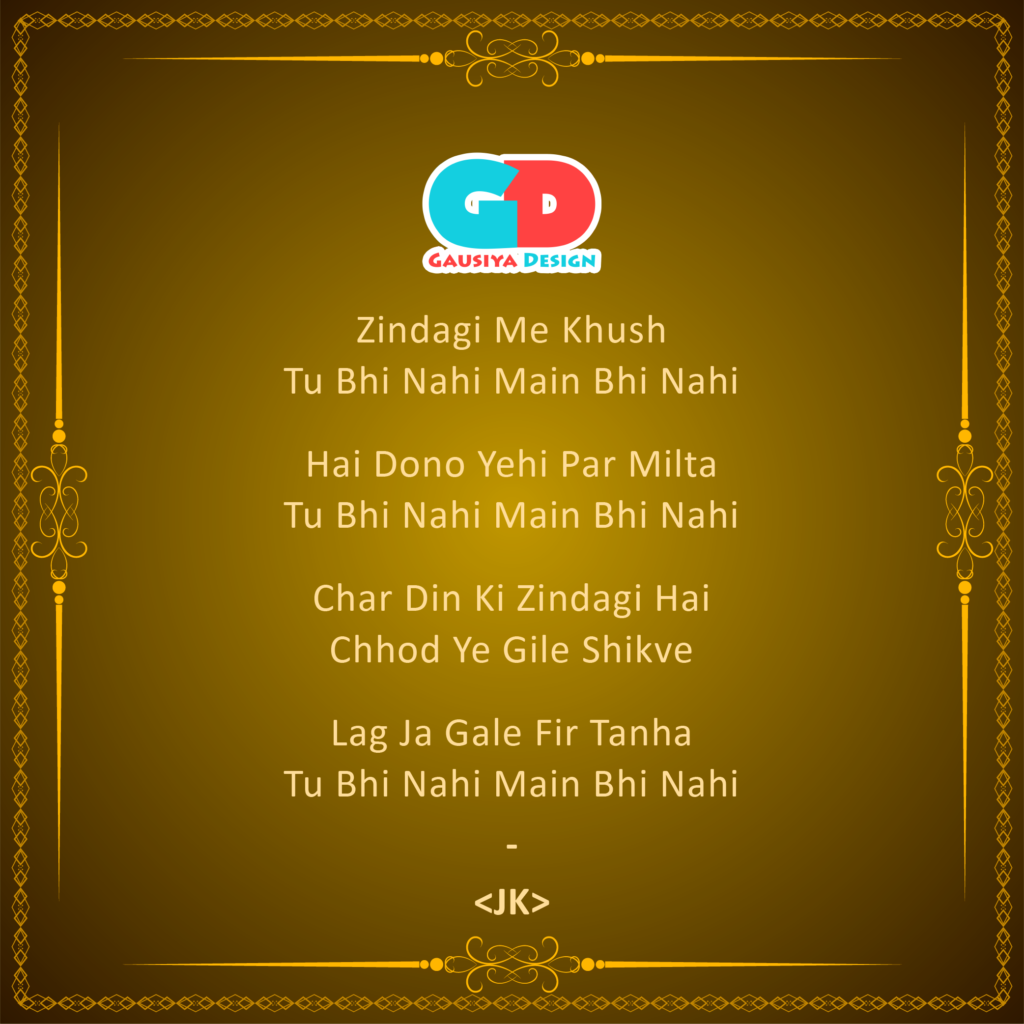 Tu bhi nahi, Main bhi nahi Posted byShayari by JKMarch 19, 2020Posted inShayariTags:Gazal, Kavita, Motivational, Poem, Quotes, Share, Shayari, Speech Share this: Click to share on X (Opens in new window) X Click to share on Facebook (Opens in new window) Facebook Click to share on LinkedIn (Opens in new window) LinkedIn Click to share on Pinterest (Opens in new window) Pinterest Click to share on WhatsApp (Opens in new window) WhatsApp Like Loading... Related Published by Shayari by JK Immerse yourself in the world of Mystic SHAYARIS with JAFAR Ali Shaikh. View more posts