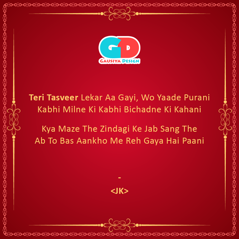 Teri Tasveer Posted byShayari by JKMay 23, 2020Posted inShayariTags:Kavita, Motivational, Poem, Quotes, Share, Shayari, Speech Share this: Click to share on X (Opens in new window) X Click to share on Facebook (Opens in new window) Facebook Click to share on LinkedIn (Opens in new window) LinkedIn Click to share on Pinterest (Opens in new window) Pinterest Click to share on WhatsApp (Opens in new window) WhatsApp Like Loading... Related Published by Shayari by JK Immerse yourself in the world of Mystic SHAYARIS with JAFAR Ali Shaikh. View more posts