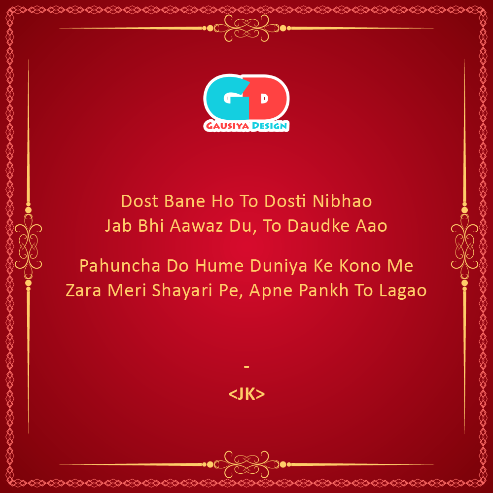 Pankh Posted byShayari by JKJune 13, 2020Posted inShayariTags:Friend, Gazal, Kavita, Motivational, Poem, Quotes, Share, Shayari, Speech Share this: Click to share on X (Opens in new window) X Click to share on Facebook (Opens in new window) Facebook Click to share on LinkedIn (Opens in new window) LinkedIn Click to share on Pinterest (Opens in new window) Pinterest Click to share on WhatsApp (Opens in new window) WhatsApp Like Loading... Related Published by Shayari by JK Immerse yourself in the world of Mystic SHAYARIS with JAFAR Ali Shaikh. View more posts