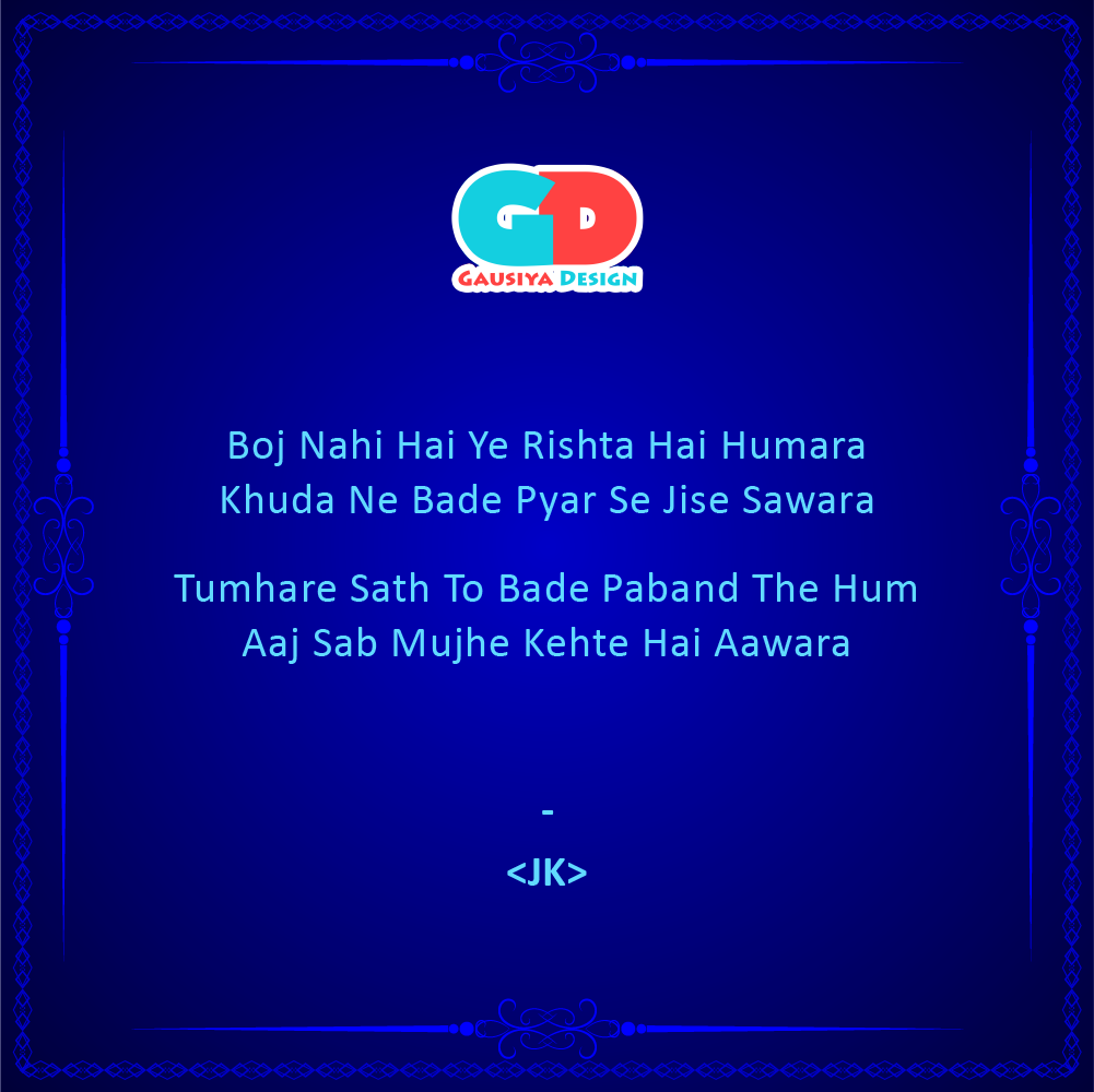Aawara Posted byShayari by JKAugust 23, 2020Posted inShayariTags:Friend, Gazal, Kavita, Motivational, Poem, Quotes, Share, Shayari, Speech Share this: Click to share on X (Opens in new window) X Click to share on Facebook (Opens in new window) Facebook Click to share on LinkedIn (Opens in new window) LinkedIn Click to share on Pinterest (Opens in new window) Pinterest Click to share on WhatsApp (Opens in new window) WhatsApp Like Loading... Related Published by Shayari by JK Immerse yourself in the world of Mystic SHAYARIS with JAFAR Ali Shaikh. View more posts