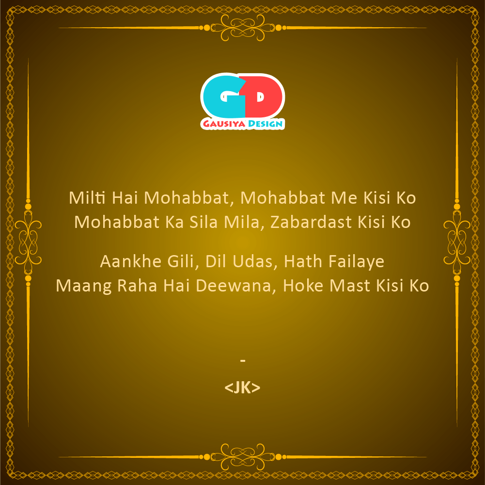 Milti Hai Mohabbat Posted byShayari by JKSeptember 1, 2020Posted inShayariTags:Friend, Gazal, Kavita, Motivational, Poem, Quotes, Share, Shayari, Speech Share this: Click to share on X (Opens in new window) X Click to share on Facebook (Opens in new window) Facebook Click to share on LinkedIn (Opens in new window) LinkedIn Click to share on Pinterest (Opens in new window) Pinterest Click to share on WhatsApp (Opens in new window) WhatsApp Like Loading... Related Published by Shayari by JK Immerse yourself in the world of Mystic SHAYARIS with JAFAR Ali Shaikh. View more posts