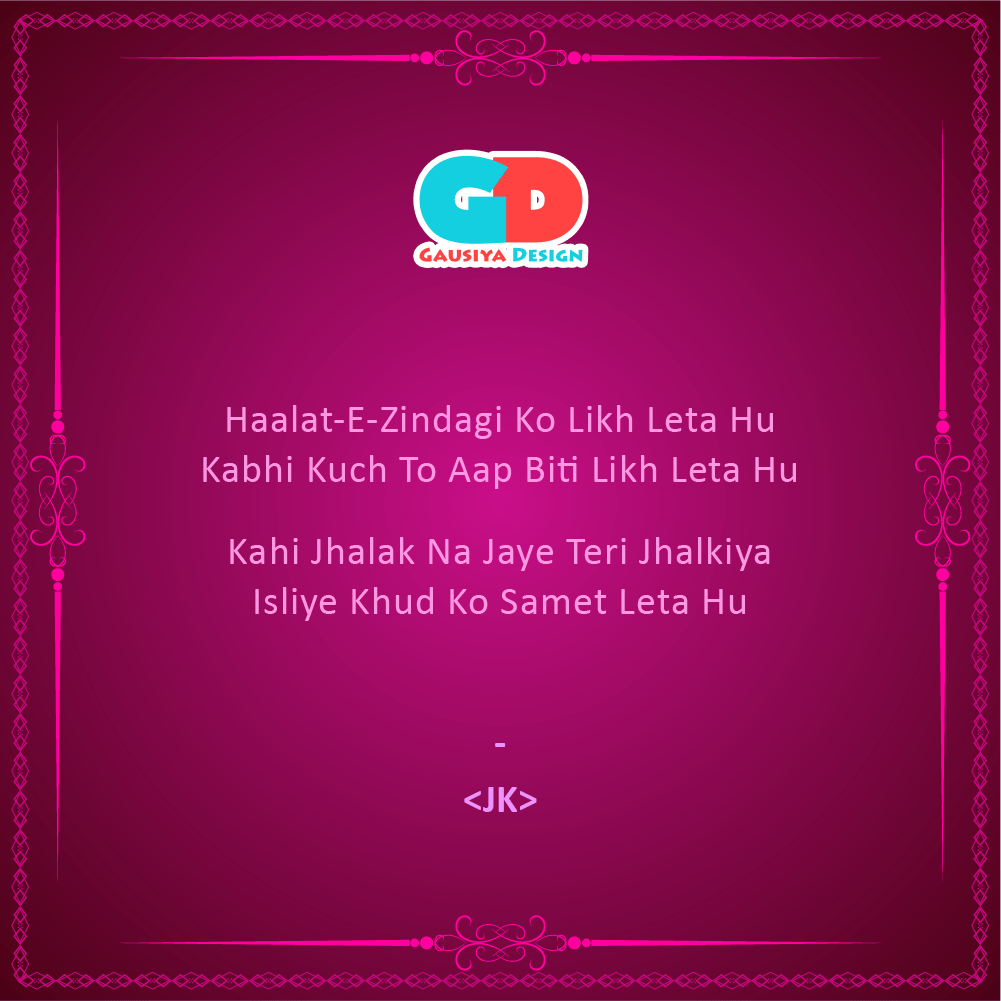 Likh leta hu Posted byShayari by JKOctober 19, 2020Posted inShayariTags:chai, coffee, Friend, Gazal, Kavita, Motivational, Poem, Quotes, Share, Shayari, Speech Written by: Jafar Ali Shaikh Share this: Click to share on X (Opens in new window) X Click to share on Facebook (Opens in new window) Facebook Click to share on LinkedIn (Opens in new window) LinkedIn Click to share on Pinterest (Opens in new window) Pinterest Click to share on WhatsApp (Opens in new window) WhatsApp Like Loading... Related Published by Shayari by JK Immerse yourself in the world of Mystic SHAYARIS with JAFAR Ali Shaikh. View more posts