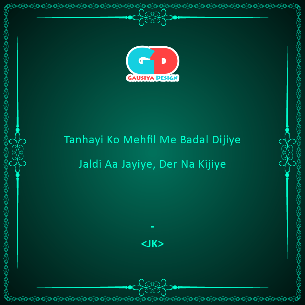 Der Na Kijiye Posted byShayari by JKNovember 25, 2020Posted inShayariTags:chai, coffee, Friend, Gazal, Kavita, Motivational, Poem, Quotes, Share, Shayari, Speech Written by: Jafar Ali Shaikh Share this: Click to share on X (Opens in new window) X Click to share on Facebook (Opens in new window) Facebook Click to share on LinkedIn (Opens in new window) LinkedIn Click to share on Pinterest (Opens in new window) Pinterest Click to share on WhatsApp (Opens in new window) WhatsApp Like Loading... Related Published by Shayari by JK Immerse yourself in the world of Mystic SHAYARIS with JAFAR Ali Shaikh. View more posts